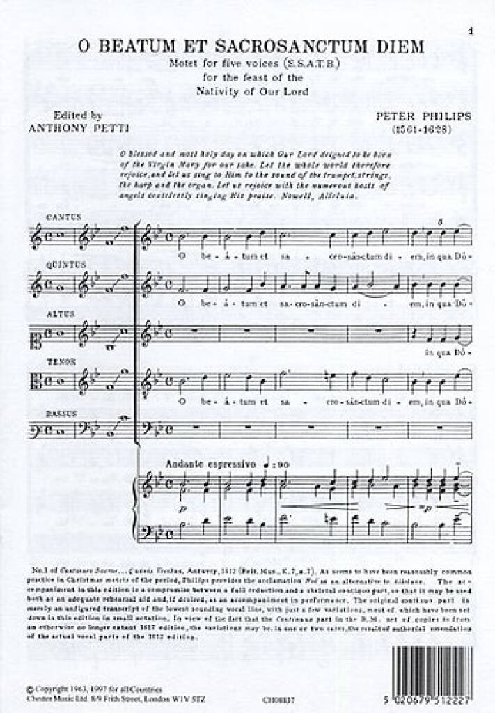 PETER PHILIPS: O BEATUM ET SACROSANCTUM DIEM CHANT