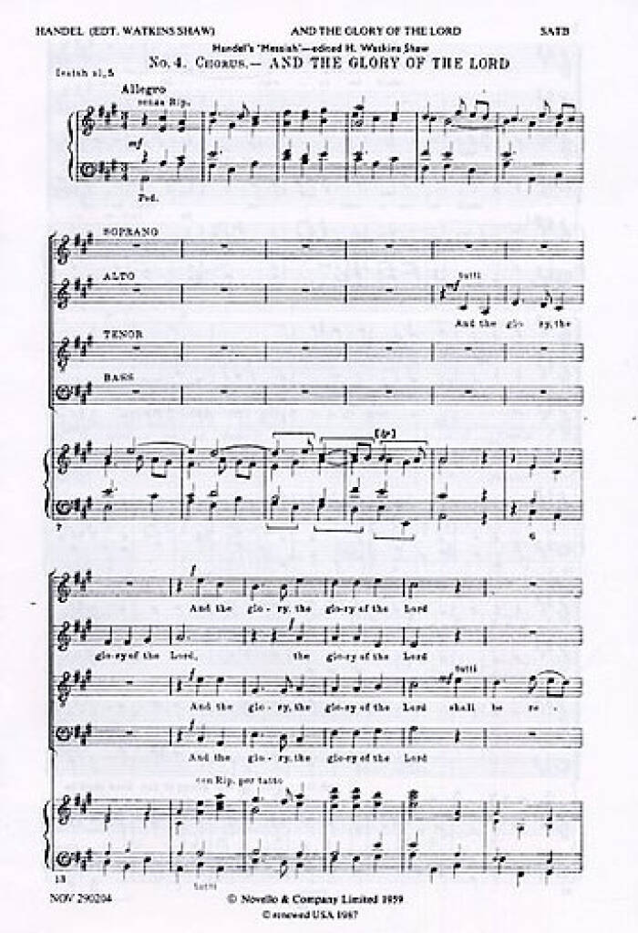 G.F. HANDEL: AND THE GLORY OF THE LORD CHANT