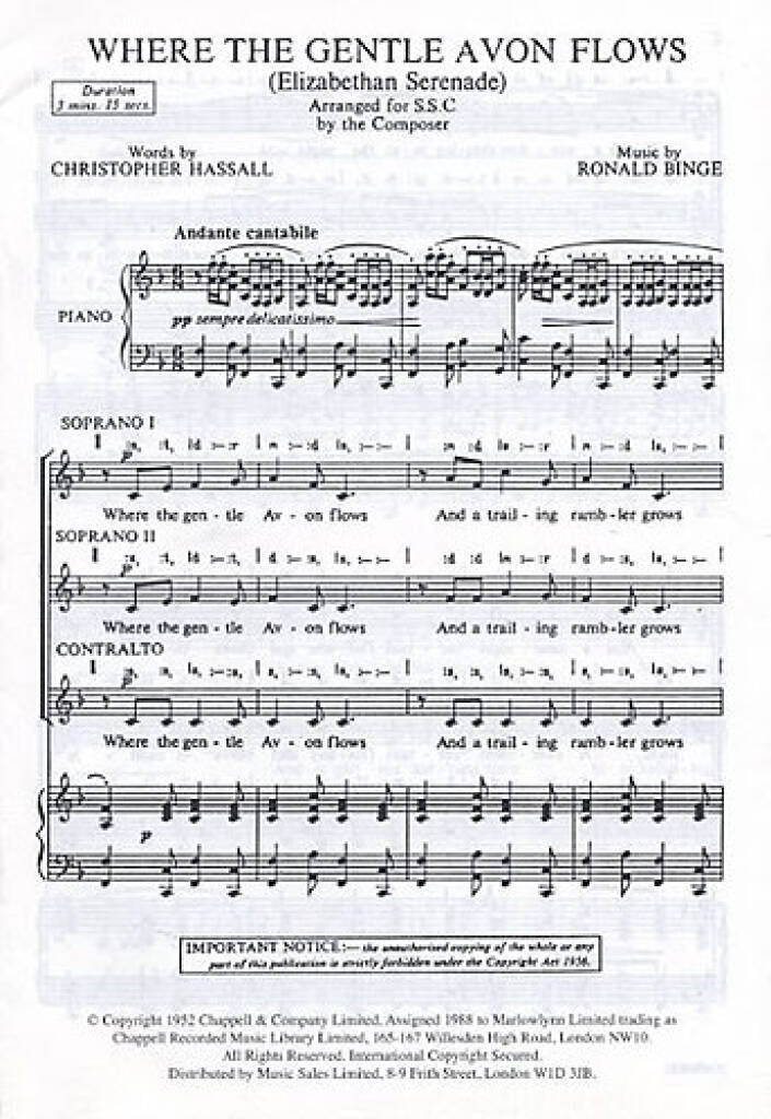 RONALD BINGE: WHERE THE GENTLE AVON FLOWS - SSA/PIANO