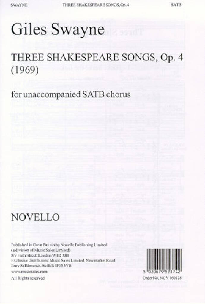 GILES SWAYNE: THREE SHAKESPEARE SONGS OP.4 SATB CHANT