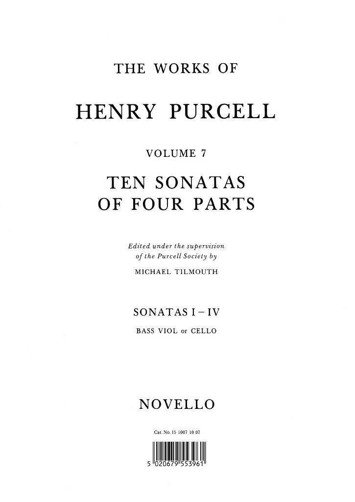 HENRY PURCELL: 10 SONATAS OF FOUR PARTS FOR CELLO (SONATAS I-IV)