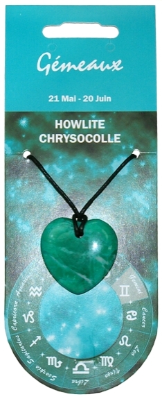 Pendentif cœur Zodiac - Gémeaux - Howlite Chrysocolle