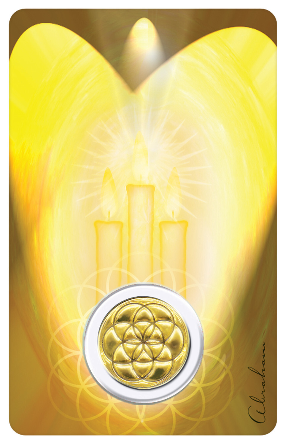 Carte plastifiée au format CB, Archange Tsaphkiel, beauté de Dieu. Prière : ''Si cela est juste, enseigne-moi les vérités célestes de la bonté et de la purification divines. Illumine ma vision de la peine, par la clarté de ton intelligence. Aide-moi à éliminer mes faiblesses, mes souffrances, mon inertie. Guide-moi dans le jugement éclairé du pèlerinage sacré. Aide-moi à clarifier le sens de mon existence et comprendre ainsi les évènements de ma vie. Offre la force de résider dans la lumière blanche. Si cela est juste, si cela doit être. Merci.''