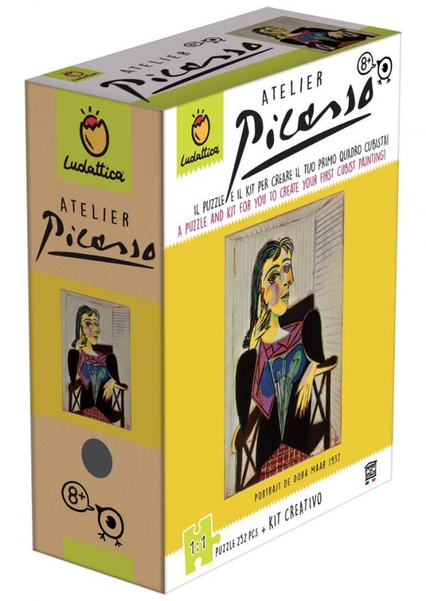 Assemble le puzzle et découvre le chef-d'oeuvre de ce grand artiste ! Mets ensuite ta créativité à l?épreuve avec le l'atelier: un coffret complet composé d?une toile de peintre, de pastels à l?huile, d?un crayon et de pochoirs, pour réaliser ta première véritable oeuvre cubiste ! Puzzle de "Portrait de Dora Maar" en 252 pièces, format 33x44cm. - Minimum de commande pour cet article : 2 unités - Minimum de commande Wilson Jeux : 100€ - CGV : http://wilsonjeux.fr/pdf/CGV-dilicom.pdf