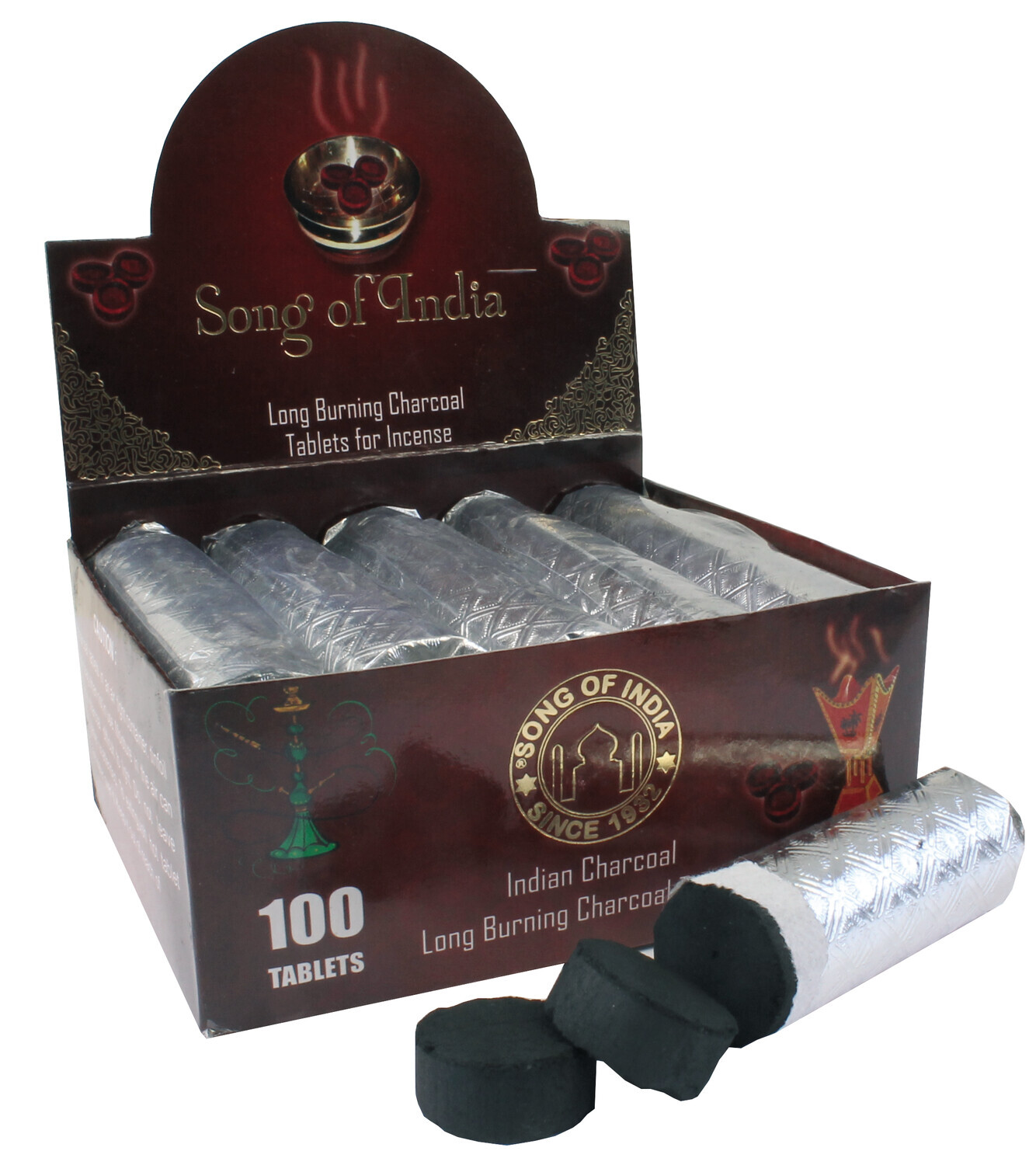 Charbons ardents. Diamètre 25 mm. [DESCRIPTION] Boîte présentoir de 10 rouleaux de 10 charbons combustion longue durée. Diamètre 25 mm. Charbons d'excellente qualité, best-seller en Asie. Chaque rouleau est conditionné hermétiquement pour maintenir le charbon à l'abri de l'humidité. Ces charbons s'embrasent lorsqu'on les présente à la flamme d'une bougie ou d'un briquet. Il consumera ensuite lentement l'encens en grain que vous y poserez dessus. [CARACTÉRISTIQUES] Boîte présentoir de 10 rouleaux de 10 charbons combustion longue durée. Diamètre 25 mm. [PRÉCAUTIONS D'EMPLOI] ATTENTION : posez toujours le charbon sur un support résistant à la chaleur.