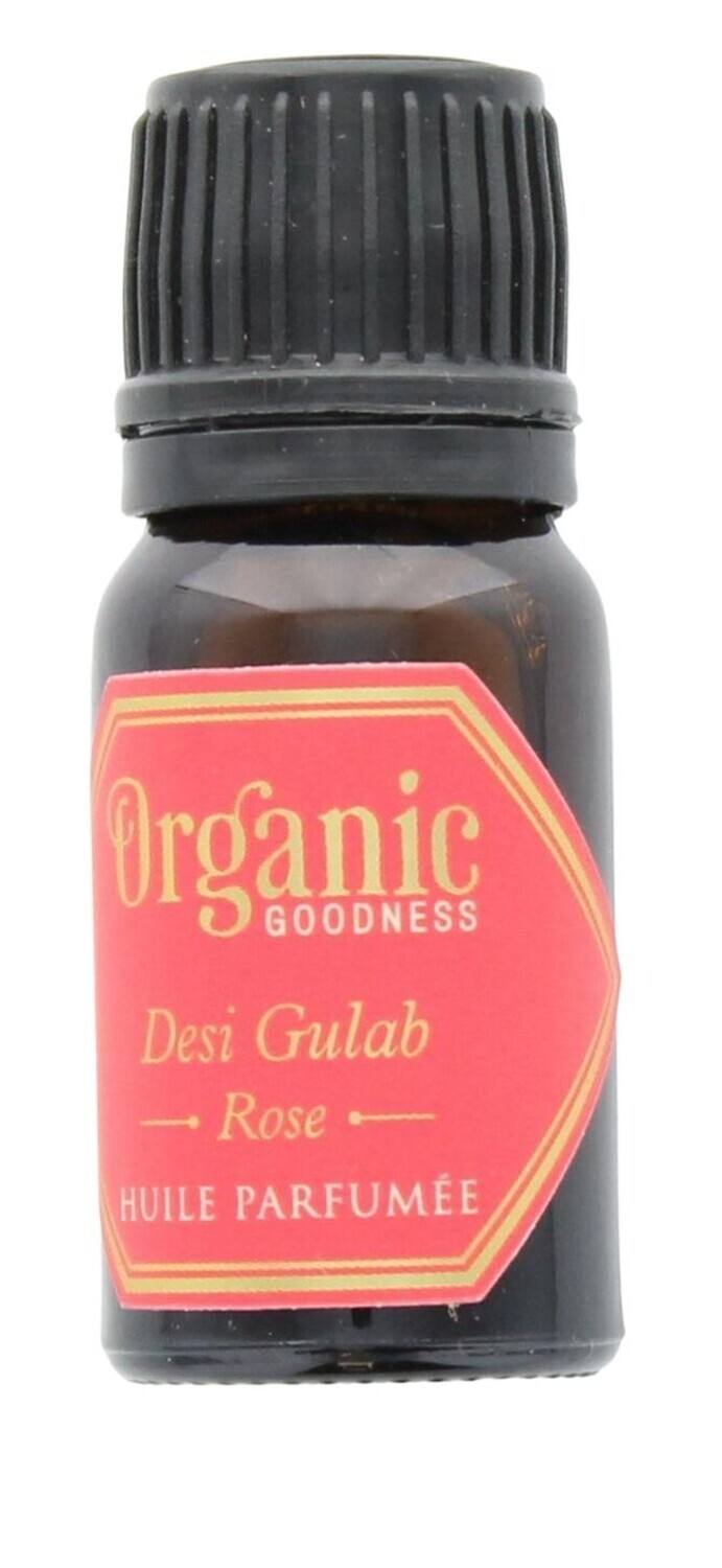 Huile parfumée Organic à la rose 10 ml Song of India. [DESCRIPTION] Huile parfumée à la rose pour diffusion à base d'huiles essentielles. Texture veloutée et parfum divin, la desi gulab est l'éternelle favorite. Elle dégage un merveilleux parfum de rose subtil et frais. Une seule bouffée de cette note florale romantique et l'on ne peut plus s'en passer. [CARACTÉRISTIQUES] Huile d'arôme biologique de rose. Bouteille en verre couleur ambre. Contenance : 10 ml. Fabriqué en Inde. [CONSEILS D'UTILISATION] Ajouter quelques gouttes d'huile dans un diffuseur ou un pot-pourri pour parfumer délicieusement l'air. [PACKAGING] Boîte carton pliante imprimée. [PRÉCAUTIONS D'EMPLOI] Usage externe uniquement. Tenir à l'écart des enfants et des animaux. Stocker dans un endroit frais et sec, à l'abri du soleil. Dangereux en cas d'ingestion. En cas d'ingestion : faire appel à un médecin en cas de malaise. Se rincer la bouche. Recueillir le produit répandu. Risque de réaction allergique cutanée. En cas de réaction allergique cutanée : laver abondamment à l'eau savonneuse claire pendant plusieurs minutes. Si l'irritation cutanée ou oculaire persiste, demander l'avis d'un médecin.