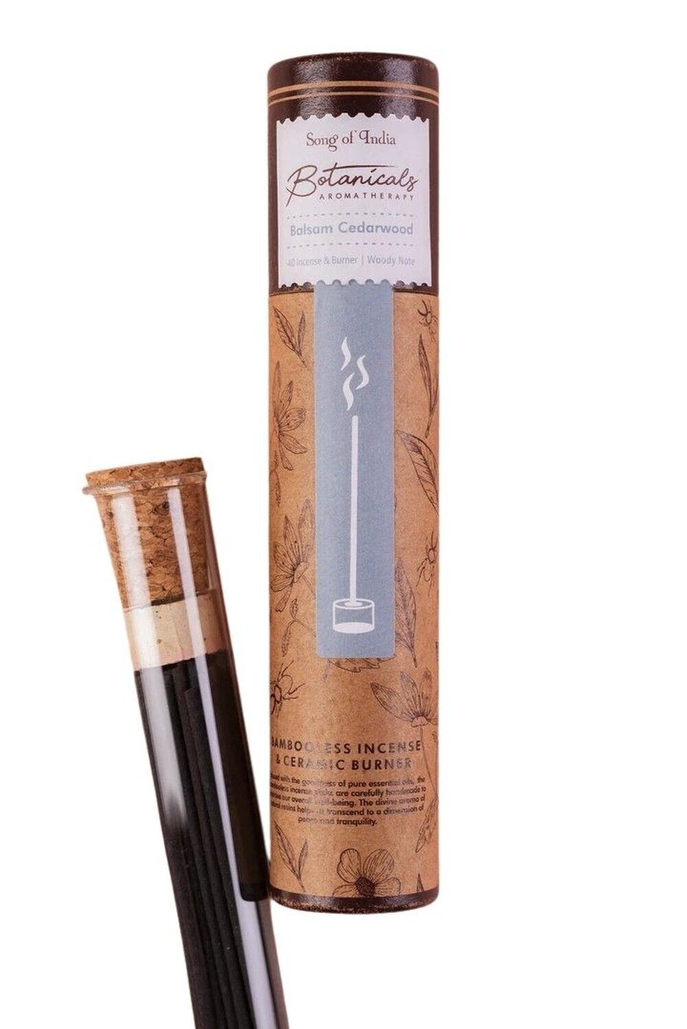 Encens Bâton Botanicals Balsam Cèdre 15 g Song of India [DESCRIPTION] Encens de 40 bâtons avec un brule encens en céramique. Le divin arôme de ses notes boisées de pin baumier et bois de cèdre, nous emporte dans une ambiance relaxante. Infusés avec des huiles essentielles pures, ces encens sans bambou sont confectionnés à la main. [CARACTÉRISTIQUES] Encens 40 bâtonnets. Composition : poudre de bois de cèdre, poudre d'encens, gomme de guar, résine, parfum et huile essentielle. Porte-encens en céramique fourni. [CONSEILS D'UTILISATION] Allumer l'extrémité de l'encens jusqu'à ce qu'elle s'enflamme. Lorsqu'elle est incandescente, souffler dessus délicatement pour éteindre la flamme. Placer le bâton d'encens sur son porte-encens. [PACKAGING] Boîte cylindrique carton imprimée à cloche. [PRÉCAUTIONS D'EMPLOI] Conserver hors de la portée des enfants. Ne jamais laisser brûler des bâtonnets d'encens sans surveillance. Ventiler pendant et après utilisation, éviter d'inhaler directement la fumée. Utiliser uniquement sur une surface thermos-résistante.