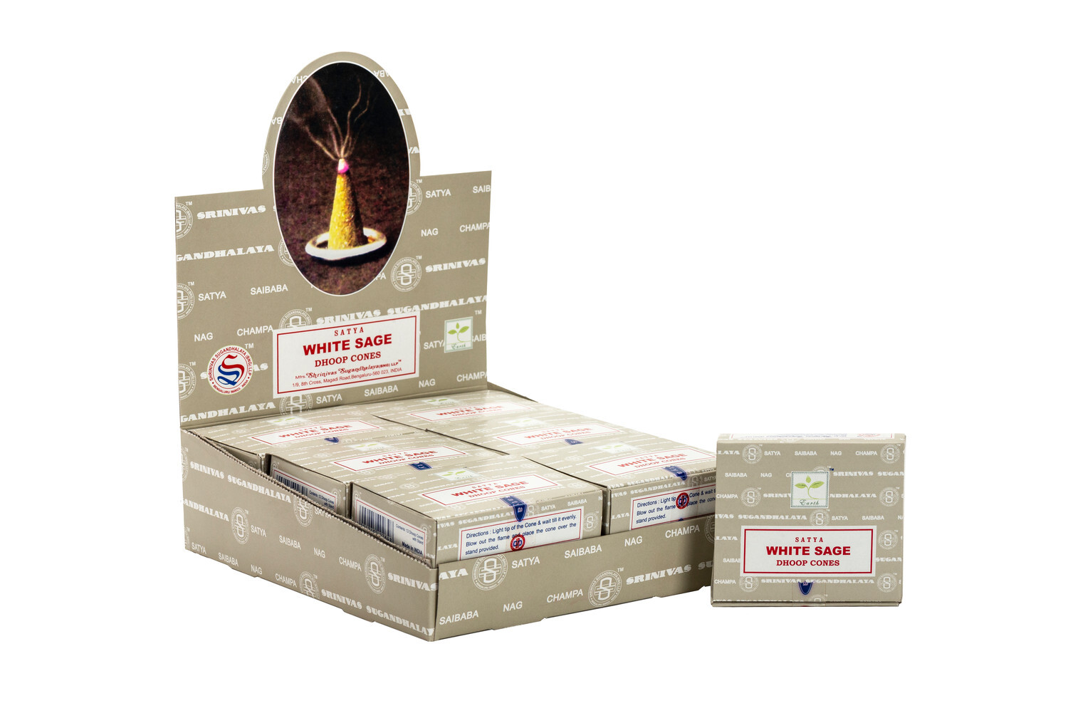 Encens Cône Satya à la Sauge blanche [DESCRIPTION] Encens Satya, Saibaba, fabriqué selon les traditions indiennes. Créer une atmosphère apaisante et purifiée avec cet encens à la sauge blanche. [CARACTÉRISTIQUES] Boîte d'encens en cônes. Présentoir de 12 boîtes. [CONSEILS D'UTILISATION] Tenir l'encens en cône d'une main en l'inclinant légèrement et allumer l'extrémité pointue du cône. Le laisser brûler quelques secondes avant de le souffler pour l'éteindre. Disposer l'encens en cône sur un support ou porte encens résistant à la chaleur. [PACKAGING] Boîte carton pliante imprimée. Présentoir de 12 boîtes. de cônes. [PRÉCAUTIONS D'EMPLOI] Ne jamais laisser brûler les encens sans surveillance. Tenir à distance des rideaux et tissus inflammables. Poser le produit sur une surface résistante à la chaleur. Tenir hors de portée des enfants et des animaux. Aérer après utilisation, éviter d'inhaler directement la fumée.