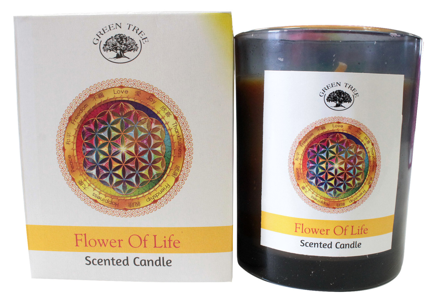 Bougie Green Tree Flower of Life [DESCRIPTION] Éclairez votre espace de vie d'une lueur chaleureuse et parfumée avec les bougies Flower of Life de Green Tree. Inspirées par le motif sacré de la Fleur de Vie, ces bougies dégagent une fragrance envoûtante qui transportera vos sens vers un état de calme et d'harmonie. Que ce soit pour créer une ambiance relaxante lors de vos moments de détente ou pour élever votre pratique de méditation, chaque bougie crée une atmosphère de paix et de sérénité. Offrez-vous un voyage sensoriel unique et profitez dès maintenant de l'énergie sacrée de la Fleur de Vie. [CARACTÉRISTIQUES] Bougie de 210 grammes, durée de combustion entre 40 et 45 heures. Faite pour explorer et améliorer vos énergies, elle est composée d'huiles les plus pures et d'ingrédients naturels récoltés des forêts indiennes. Composition : 30 % d'huile de palme, 50% huile de soja, 20% huiles essentielles.