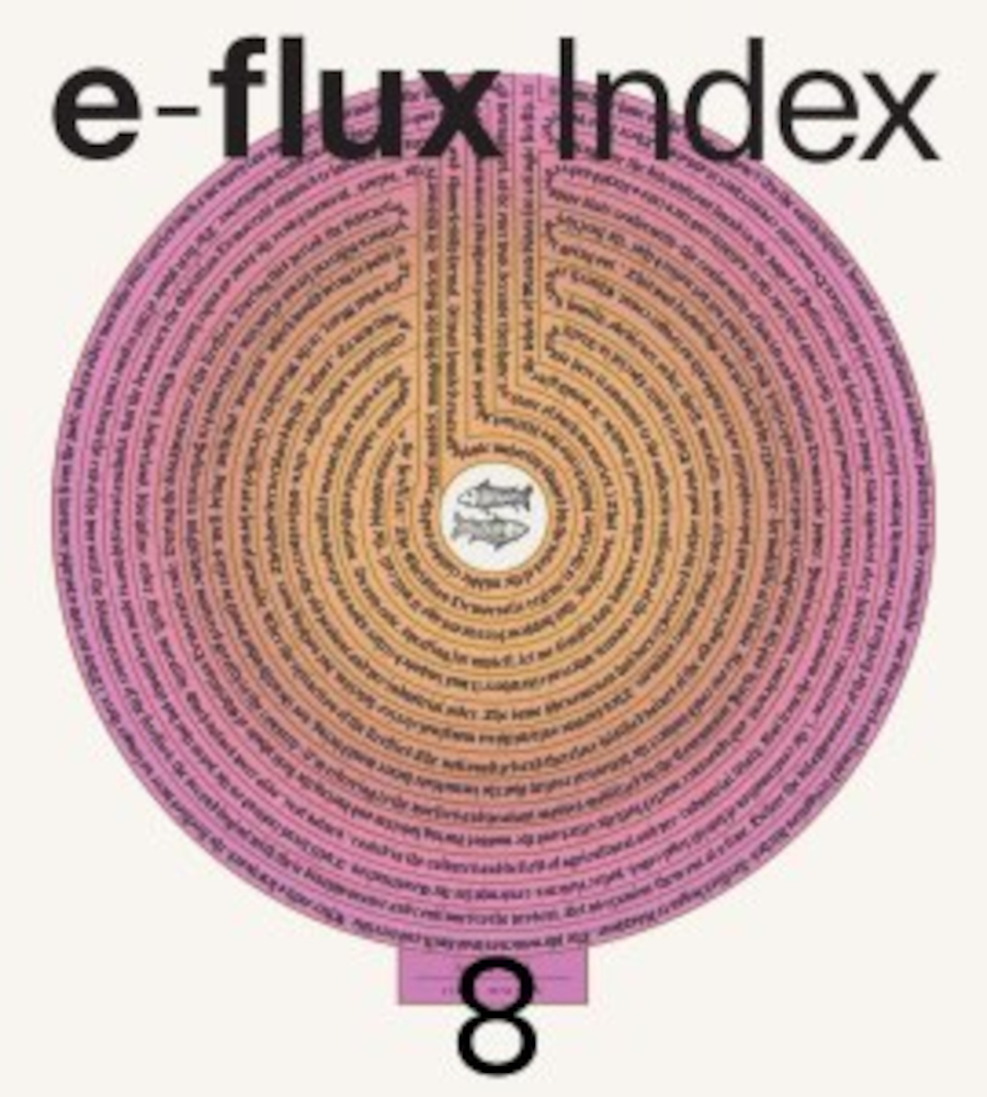 e-flux Index est un grand recueil imprimé trimestriel des écrits les plus significatifs sur l'art, la culture et la théorie, provenant de l'ensemble des plateformes en ligne d'e-flux. Il combine des essais de fond issus d'e-flux Journal et d'e-flux Architecture, des critiques d'expositions, de livres et de films d'e-flux Criticism, des articles et des entretiens avec des étudiants et des enseignants d'e-flux Education, et des articles d'opinion d'e-flux Notes, en les organisant de manière thématique pour « indexer les arts » et archiver le présent.