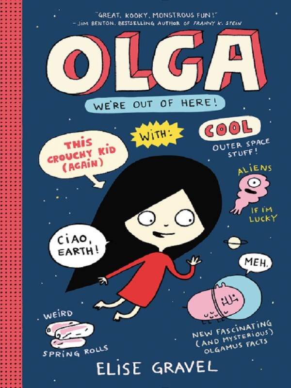 Animal lover and kid scientist Olga is back! Great for fans of the acclaimed graphic novels Real Friends and Invisible Emmie. In this second installment of a series Franny K. Stein creator Jim Benton called “great, kooky, monstrous fun,” Olga wants to leave earth in search of Meh’s home planet, but first she’ll have to discover why Meh is acting so strange. Olga: We’re Out of Here is jam-packed with facts and fun: Elise Gravel’s classic comic illustrations, hilarious word bubbles , space travel facts, and a diverse cast of memorable characters. Brightly.com put Olga and the Smelly Thing from Nowhere on their "Ultimate Summer Reading List for 9- to 12-Year-Olds." And Kirkus said of it: “A visually interesting mix of illustration and story, punctuated by numerous lists, comic panels, and cartoon diagrams and led by a smart female protagonist. A bubble-gum crowd pleaser with wide audience appeal.”