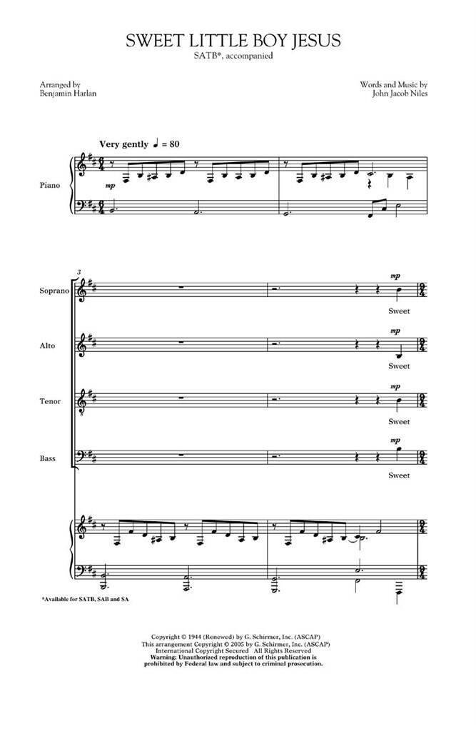 JOHN JACOB NILES: SWEET LITTLE BOY JESUS (ARR. BENJAMIN HARLAN) CHANT