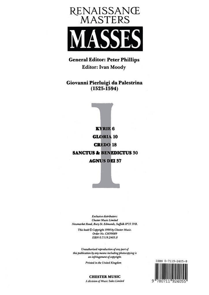 RENAISSANCE MASTERS MASSES 1: PALESTRINA MISSA DIES SANCTIFICATUS CHANT