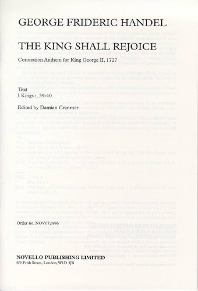 G.F. HANDEL: THE KING SHALL REJOICE CHANT