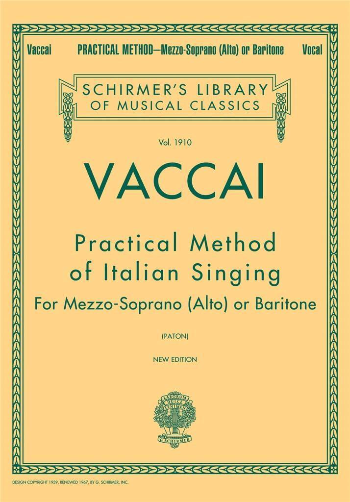 NICOLA VACCAI : PRACTICAL METHOD OF ITALIAN SINGING - MEZZO SOPRANO (ALTO) / BARITONE VOICE