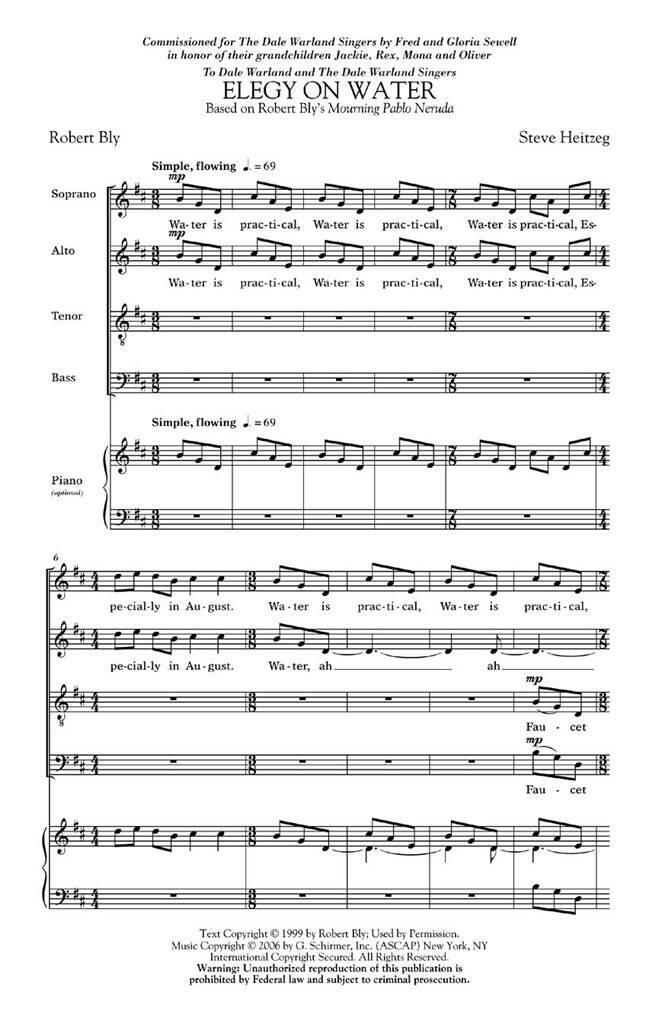 STEVE HEITZEG ELEGY ON WATER (DALE WARLAND CHORAL) SATB CHOR