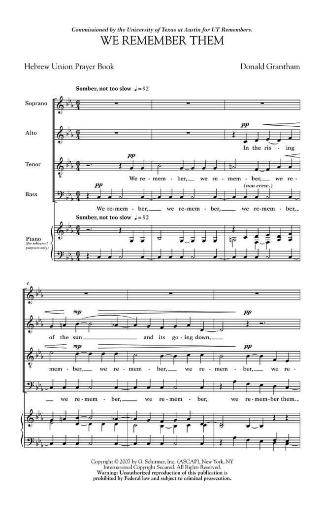 GRANTHAM, DONALD: WE REMEMBER THEM SATB CHANT