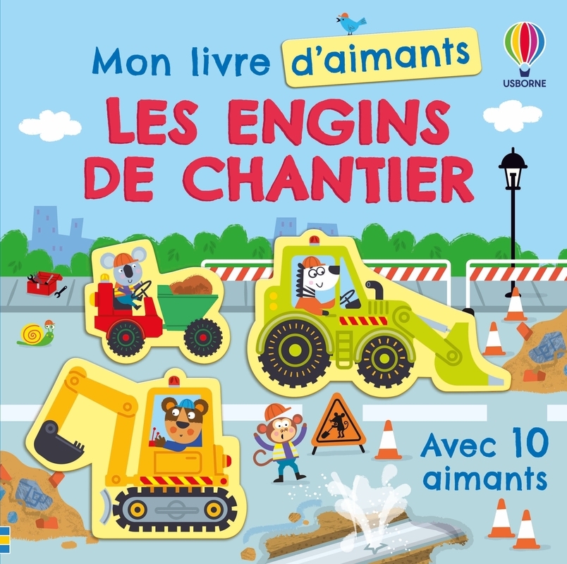 Un livre magnétique sur le thème des engins de chantier avec 10 aimants à placer. Un livre magnétique avec 5 scènes à animer grâce à 10 aimants d'engins de chantier à placer, comme un camion-benne, une pelleteuse, un rouleau compresseur, un camion-toupie, une pelle à grapin, un camion de chantier ou encore un bulldozer. Les enfants adoreront placer et déplacer les aimants sur les scènes de chantier pour aider les personnages à démolir un mur, construire une route ou faire couler du ciment, et créer leur propre histoire, avant de les ranger dans la couverture et de tout recommencer !