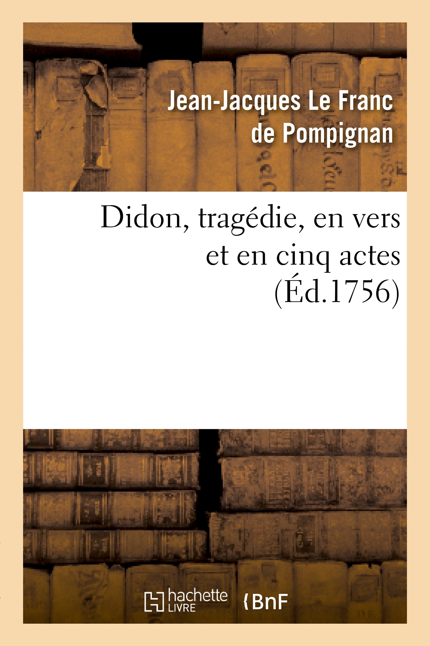 Didon , tragédie,en vers et en cinq actes. Par M. Le Franc, nouvellement corrigée par l'auteur Date de l'édition originale : 1756 Le présent ouvrage s'inscrit dans une politique de conservation patrimoniale des ouvrages de la littérature Française mise en place avec la BNF. HACHETTE LIVRE et la BNF proposent ainsi un catalogue de titres indisponibles, la BNF ayant numérisé ces œuvres et HACHETTE LIVRE les imprimant à la demande. Certains de ces ouvrages reflètent des courants de pensée caractéristiques de leur époque, mais qui seraient aujourd'hui jugés condamnables. Ils n'en appartiennent pas moins à l'histoire des idées en France et sont susceptibles de présenter un intérêt scientifique ou historique. Le sens de notre démarche éditoriale consiste ainsi à permettre l'accès à ces œuvres sans pour autant que nous en cautionnions en aucune façon le contenu. Pour plus d'informations, rendez-vous sur www.hachettebnf.fr