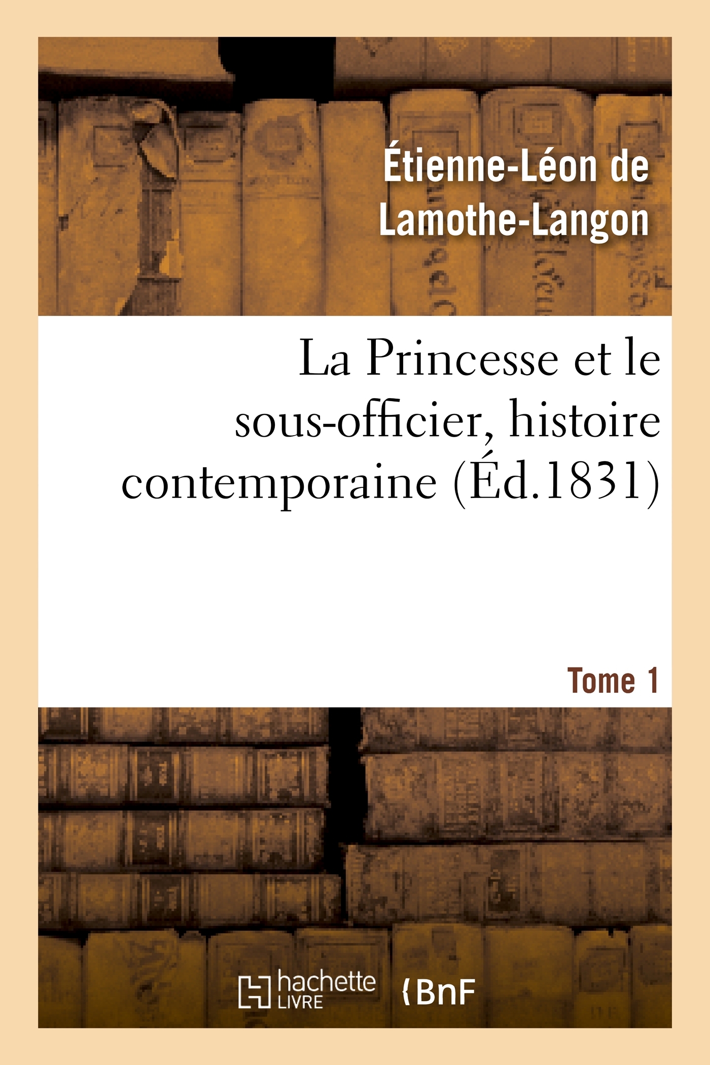 La Princesse et le sous-officier, histoire contemporaine, par É.-L. B. de Lamothe-Langon. Tome 1 Date de l'édition originale : 1831 Le présent ouvrage s'inscrit dans une politique de conservation patrimoniale des ouvrages de la littérature Française mise en place avec la BNF. HACHETTE LIVRE et la BNF proposent ainsi un catalogue de titres indisponibles, la BNF ayant numérisé ces œuvres et HACHETTE LIVRE les imprimant à la demande. Certains de ces ouvrages reflètent des courants de pensée caractéristiques de leur époque, mais qui seraient aujourd'hui jugés condamnables. Ils n'en appartiennent pas moins à l'histoire des idées en France et sont susceptibles de présenter un intérêt scientifique ou historique. Le sens de notre démarche éditoriale consiste ainsi à permettre l'accès à ces œuvres sans pour autant que nous en cautionnions en aucune façon le contenu. Pour plus d'informations, rendez-vous sur www.hachettebnf.fr