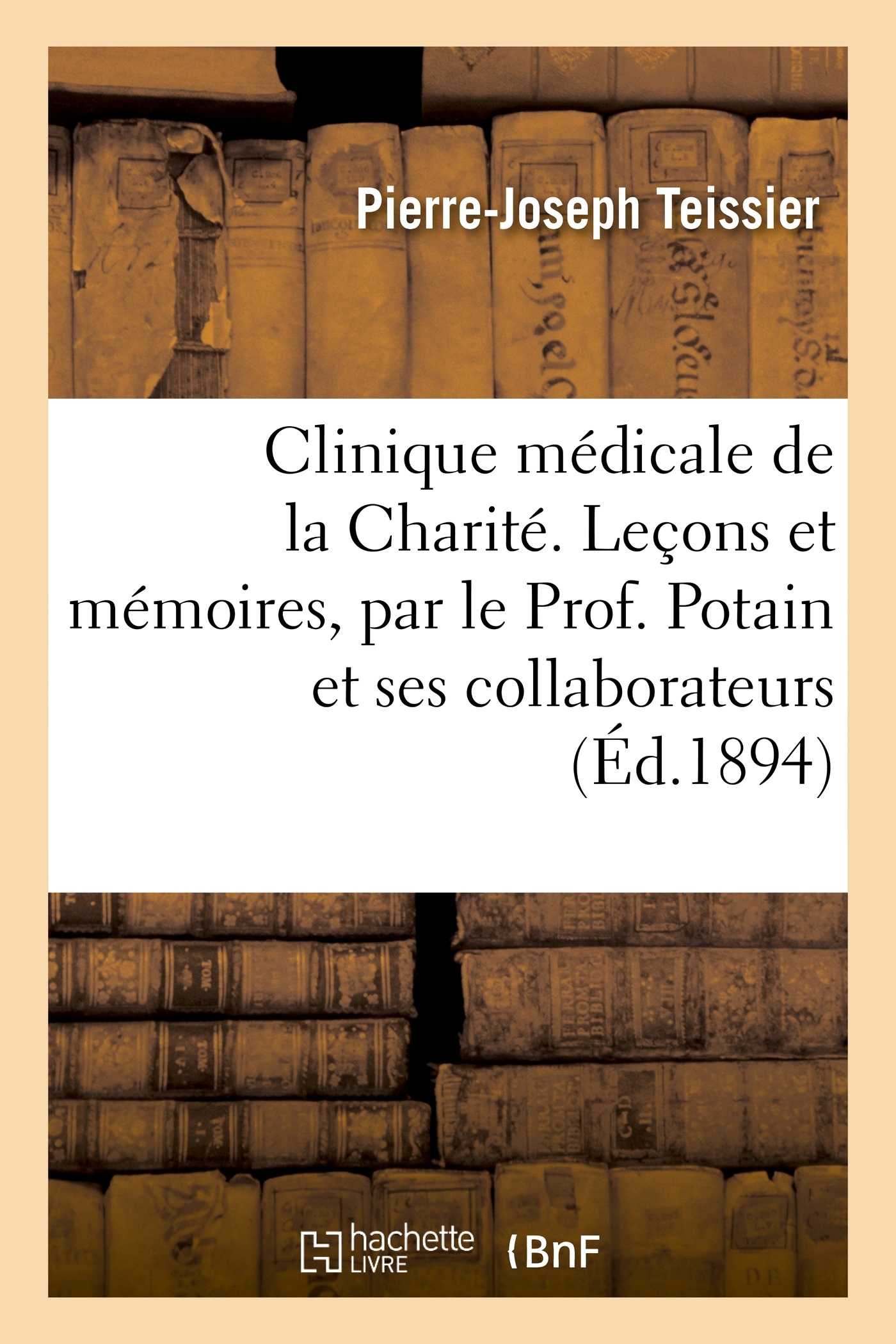 Clinique médicale de la Charité. Leçons et mémoires, par le Prof. Potain et ses collaborateurs, Ch.-A. François-Franck,... E. Suchard,... H. Vaquez,... P.-J. Teissier,... Date de l'édition originale : 1894 Le présent ouvrage s'inscrit dans une politique de conservation patrimoniale des ouvrages de la littérature Française mise en place avec la BNF. HACHETTE LIVRE et la BNF proposent ainsi un catalogue de titres indisponibles, la BNF ayant numérisé ces œuvres et HACHETTE LIVRE les imprimant à la demande. Certains de ces ouvrages reflètent des courants de pensée caractéristiques de leur époque, mais qui seraient aujourd'hui jugés condamnables. Ils n'en appartiennent pas moins à l'histoire des idées en France et sont susceptibles de présenter un intérêt scientifique ou historique. Le sens de notre démarche éditoriale consiste ainsi à permettre l'accès à ces œuvres sans pour autant que nous en cautionnions en aucune façon le contenu. Pour plus d'informations, rendez-vous sur www.hachettebnf.fr