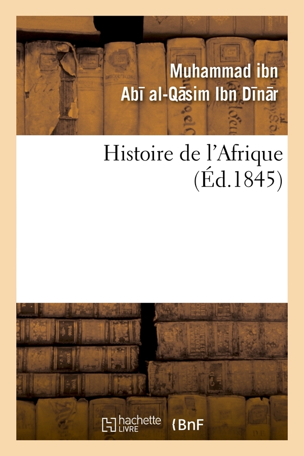 Histoire de l'Afrique / de Moh'hammed-ben-Abi-el-Raïni-K'aïrouani ; trad. de l'arabe par MM. E. Pellissier et Rémusat Date de l'édition originale : 1845 Sujet de l'ouvrage : Afrique du Nord -- 19e siècle Titre original : Kitab al-mu?nis fi Afriqiyyat¨ wa-TunisCollection : Exploration scientifique de l'Algérie ; 7 Le présent ouvrage s'inscrit dans une politique de conservation patrimoniale des ouvrages de la littérature Française mise en place avec la BNF. HACHETTE LIVRE et la BNF proposent ainsi un catalogue de titres indisponibles, la BNF ayant numérisé ces œuvres et HACHETTE LIVRE les imprimant à la demande. Certains de ces ouvrages reflètent des courants de pensée caractéristiques de leur époque, mais qui seraient aujourd'hui jugés condamnables. Ils n'en appartiennent pas moins à l'histoire des idées en France et sont susceptibles de présenter un intérêt scientifique ou historique. Le sens de notre démarche éditoriale consiste ainsi à permettre l'accès à ces œuvres sans pour autant que nous en cautionnions en aucune façon le contenu. Pour plus d'informations, rendez-vous sur www.hachettebnf.fr