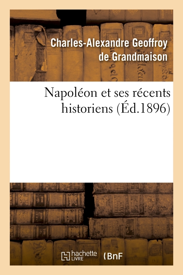 Napoléon et ses récents historiens / Geoffroy de Grandmaison Date de l'édition originale : 1896 Sujet de l'ouvrage : Napoléon Ier (empereur des Français ; 1769-1821) -- BiographiesFrance (1804-1814, Empire) Le présent ouvrage s'inscrit dans une politique de conservation patrimoniale des ouvrages de la littérature Française mise en place avec la BNF. HACHETTE LIVRE et la BNF proposent ainsi un catalogue de titres indisponibles, la BNF ayant numérisé ces œuvres et HACHETTE LIVRE les imprimant à la demande. Certains de ces ouvrages reflètent des courants de pensée caractéristiques de leur époque, mais qui seraient aujourd'hui jugés condamnables. Ils n'en appartiennent pas moins à l'histoire des idées en France et sont susceptibles de présenter un intérêt scientifique ou historique. Le sens de notre démarche éditoriale consiste ainsi à permettre l'accès à ces œuvres sans pour autant que nous en cautionnions en aucune façon le contenu. Pour plus d'informations, rendez-vous sur www.hachettebnf.fr