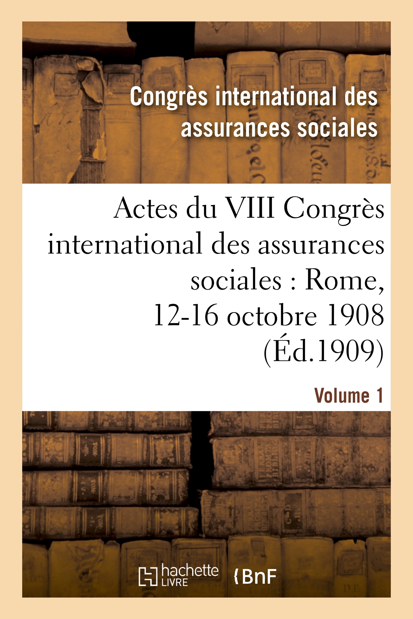 Actes du VIII Congrès international des assurances sociales : Rome, 12-16 octobre 1908. Volume 1 Date de l'édition originale : 1909 Le présent ouvrage s'inscrit dans une politique de conservation patrimoniale des ouvrages de la littérature Française mise en place avec la BNF. HACHETTE LIVRE et la BNF proposent ainsi un catalogue de titres indisponibles, la BNF ayant numérisé ces œuvres et HACHETTE LIVRE les imprimant à la demande. Certains de ces ouvrages reflètent des courants de pensée caractéristiques de leur époque, mais qui seraient aujourd'hui jugés condamnables. Ils n'en appartiennent pas moins à l'histoire des idées en France et sont susceptibles de présenter un intérêt scientifique ou historique. Le sens de notre démarche éditoriale consiste ainsi à permettre l'accès à ces œuvres sans pour autant que nous en cautionnions en aucune façon le contenu. Pour plus d'informations, rendez-vous sur www.hachettebnf.fr