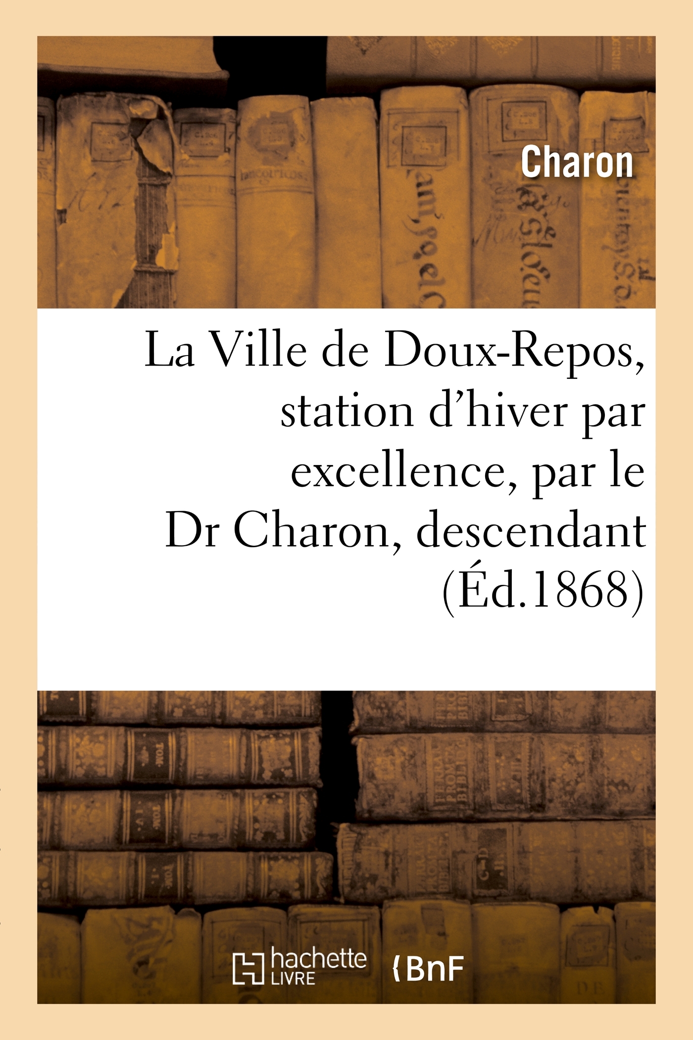 La Ville de Doux-Repos, station d'hiver par excellence, par le Dr Charon, descendant du bien connu nocher d'outre-tombe Date de l'édition originale : 1868 Le présent ouvrage s'inscrit dans une politique de conservation patrimoniale des ouvrages de la littérature Française mise en place avec la BNF. HACHETTE LIVRE et la BNF proposent ainsi un catalogue de titres indisponibles, la BNF ayant numérisé ces œuvres et HACHETTE LIVRE les imprimant à la demande. Certains de ces ouvrages reflètent des courants de pensée caractéristiques de leur époque, mais qui seraient aujourd'hui jugés condamnables. Ils n'en appartiennent pas moins à l'histoire des idées en France et sont susceptibles de présenter un intérêt scientifique ou historique. Le sens de notre démarche éditoriale consiste ainsi à permettre l'accès à ces œuvres sans pour autant que nous en cautionnions en aucune façon le contenu. Pour plus d'informations, rendez-vous sur www.hachettebnf.fr