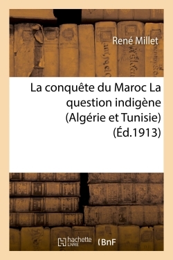 La conquête du Maroc ; La question indigène (Algérie et Tunisie) / par René Millet,... Date de l'édition originale : 1913 Sujet de l'ouvrage : France -- Colonies -- AfriqueMaroc -- 1912-1956 (Protectorats espagnol et français)Afrique du Nord -- Politique et gouvernement -- 1900-1945 Collection : France d'Outre-Mer Le présent ouvrage s'inscrit dans une politique de conservation patrimoniale des ouvrages de la littérature Française mise en place avec la BNF. HACHETTE LIVRE et la BNF proposent ainsi un catalogue de titres indisponibles, la BNF ayant numérisé ces œuvres et HACHETTE LIVRE les imprimant à la demande. Certains de ces ouvrages reflètent des courants de pensée caractéristiques de leur époque, mais qui seraient aujourd'hui jugés condamnables. Ils n'en appartiennent pas moins à l'histoire des idées en France et sont susceptibles de présenter un intérêt scientifique ou historique. Le sens de notre démarche éditoriale consiste ainsi à permettre l'accès à ces œuvres sans pour autant que nous en cautionnions en aucune façon le contenu. Pour plus d'informations, rendez-vous sur www.hachettebnf.fr