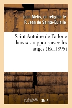 Saint Antoine de Padoue dans ses rapports avec les anges, par le R. P. Jean de Ste-Eulalie,... Date de l'édition originale : 1895 Le présent ouvrage s'inscrit dans une politique de conservation patrimoniale des ouvrages de la littérature Française mise en place avec la BNF. HACHETTE LIVRE et la BNF proposent ainsi un catalogue de titres indisponibles, la BNF ayant numérisé ces œuvres et HACHETTE LIVRE les imprimant à la demande. Certains de ces ouvrages reflètent des courants de pensée caractéristiques de leur époque, mais qui seraient aujourd'hui jugés condamnables. Ils n'en appartiennent pas moins à l'histoire des idées en France et sont susceptibles de présenter un intérêt scientifique ou historique. Le sens de notre démarche éditoriale consiste ainsi à permettre l'accès à ces œuvres sans pour autant que nous en cautionnions en aucune façon le contenu. Pour plus d'informations, rendez-vous sur www.hachettebnf.fr