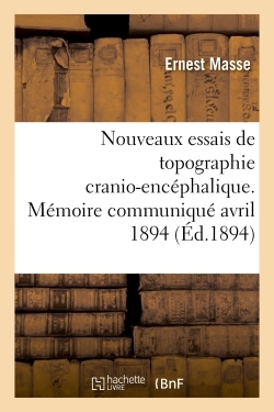 Nouveaux essais de topographie cranio-encéphalique, par M. le professeur E. Masse... et M. le docteur Woolonghen. Mémoire communiqué au XIe Congrès médical international de Rome (avril 1894) Date de l'édition originale : 1894 Appartient à l'ensemble documentaire : Aquit1 Le présent ouvrage s'inscrit dans une politique de conservation patrimoniale des ouvrages de la littérature Française mise en place avec la BNF. HACHETTE LIVRE et la BNF proposent ainsi un catalogue de titres indisponibles, la BNF ayant numérisé ces œuvres et HACHETTE LIVRE les imprimant à la demande. Certains de ces ouvrages reflètent des courants de pensée caractéristiques de leur époque, mais qui seraient aujourd'hui jugés condamnables. Ils n'en appartiennent pas moins à l'histoire des idées en France et sont susceptibles de présenter un intérêt scientifique ou historique. Le sens de notre démarche éditoriale consiste ainsi à permettre l'accès à ces œuvres sans pour autant que nous en cautionnions en aucune façon le contenu. Pour plus d'informations, rendez-vous sur www.hachettebnf.fr