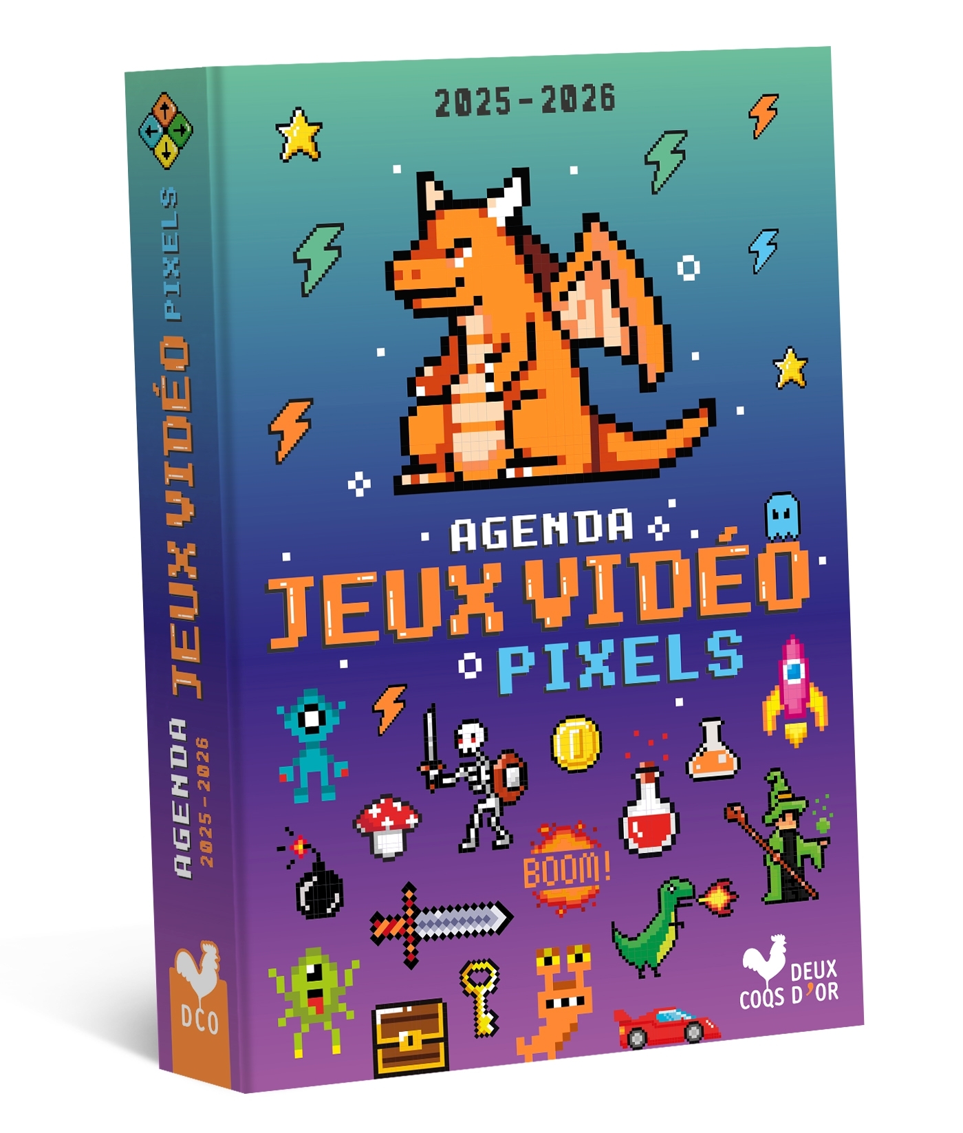Un agenda 2025-2026 pour tous les fans de pixels et de jeux vidéo ! Une page par jour pour y noter ses devoirs. Un agenda utile et pratique avec les dates des vacances scolaires, l'emploi du temps, les tables de conjugaison et de multiplication... Des pages de jeux et de dessins pixels à compléter et à colorier.