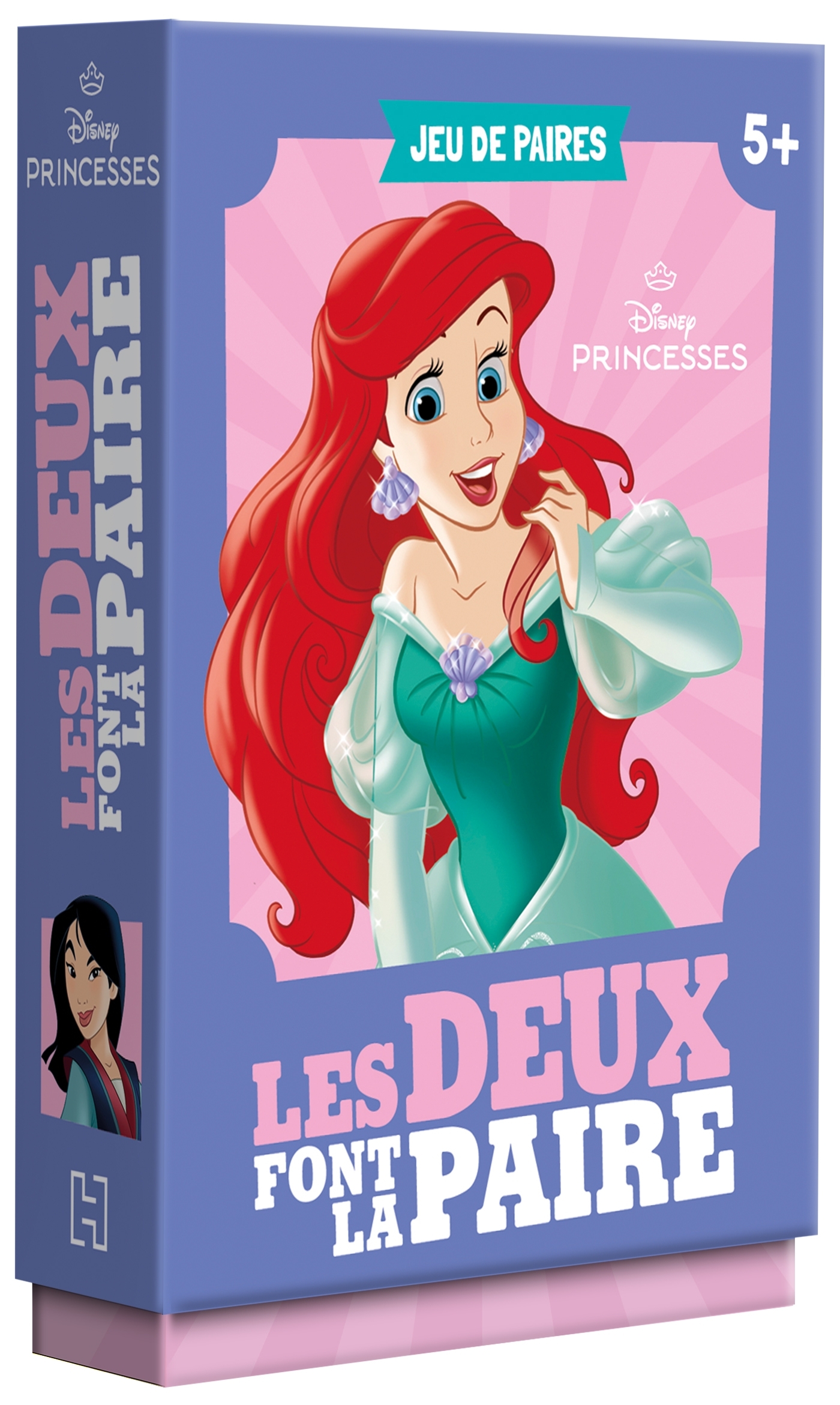 Le jeu des paires des princesses Disney ! Un jeu et des personnages appréciés par les enfants dès 5 ans. Un packaging très pratique pour ranger les cartes à la fin de la partie. Une identité visuelle qui donne envie de collectionner les boîtes. Dès 5 ans. Le jeu : Pour remporter la partie de ce jeu de rapidité, il faut être le premier à se débarrasser de toutes ses cartes en constituant des paires.