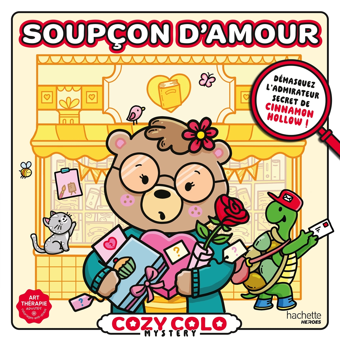 Quand la douceur de la Saint-Valentin laisse place à un jeu de piste orchestré par un admirateur secret, c’est à vous de mener l’enquête ! À chaque page, découvrez des scènes cozy à colorier et ouvrez l’oeil : des indices se cachent dans les moindres détails. Donnez vie à l’univers romantique de Cinnamon Hollow et avancez pas à pas pour résoudre le mystère ! 1 - CHOISISSEZ VOS OUTILS - crayons de couleur, feutres à eau, feutres à alcool ou feutres acryliques 2 – MUNISSEZ-VOUS DE VOS PLUS BELLES COULEURS - pour donner vie à d’adorables personnages 3 – PROFITEZ D’UN MOMENT COCOONING - avec les cozy colos Hachette Heroes ! DES ILLUSTRATIONS COZY - simples et satisfaisantes à colorier, avec des lignes arrondies et épaisses UN PAPIER ÉPAIS À 170 GRAMMES - pour un confort et un rendu optimal UNE IMPRESSION RECTO SEUL - pour utiliser n’importe quel matériel sans s’inquiéter de transpercer la page UN CADEAU PARFAIT - pour les fans de coloriage de tous âges