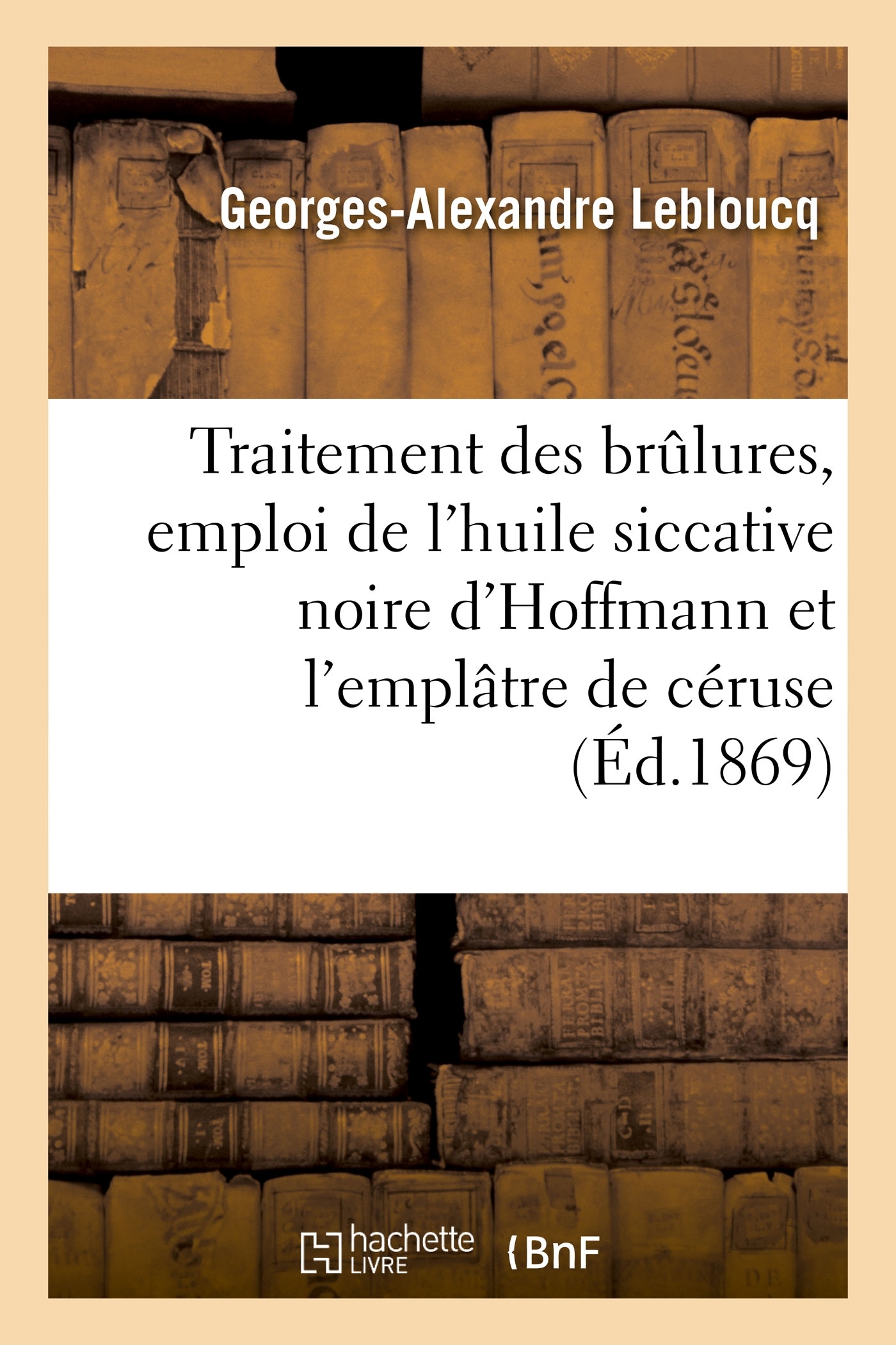 Du Traitement des brûlures, emploi de l'huile siccative noire d'Hoffmann et de l'emplâtre de céruse, par G. Leboucq,... Date de l'édition originale : 1869 Le présent ouvrage s'inscrit dans une politique de conservation patrimoniale des ouvrages de la littérature Française mise en place avec la BNF. HACHETTE LIVRE et la BNF proposent ainsi un catalogue de titres indisponibles, la BNF ayant numérisé ces oeuvres et HACHETTE LIVRE les imprimant à la demande. Certains de ces ouvrages reflètent des courants de pensée caractéristiques de leur époque, mais qui seraient aujourd'hui jugés condamnables. Ils n'en appartiennent pas moins à l'histoire des idées en France et sont susceptibles de présenter un intérêt scientifique ou historique. Le sens de notre démarche éditoriale consiste ainsi à permettre l'accès à ces oeuvres sans pour autant que nous en cautionnions en aucune façon le contenu. Pour plus d'informations, rendez-vous sur www.hachettebnf.fr