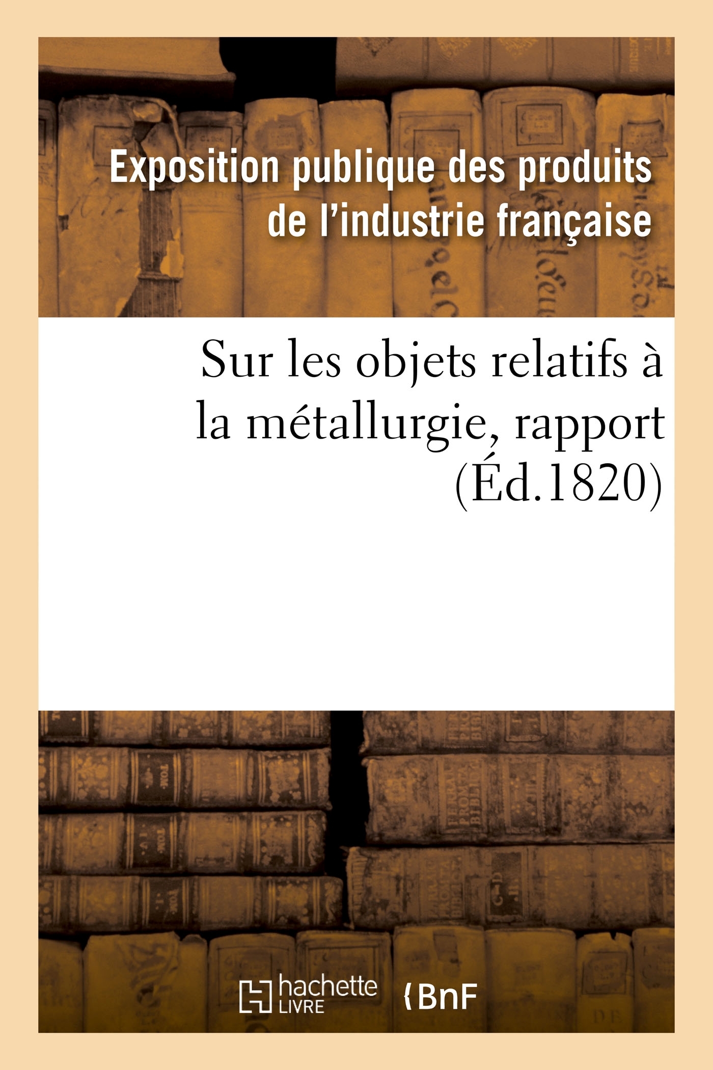 Rapport fait au jury central de l'Exposition des produits de l'industrie française de l'année 1819 sur les objets relatifs à la métallurgie ,... par A.-M. Héron de Villefosse,... Date de l'édition originale : 1820 Le présent ouvrage s'inscrit dans une politique de conservation patrimoniale des ouvrages de la littérature Française mise en place avec la BNF. HACHETTE LIVRE et la BNF proposent ainsi un catalogue de titres indisponibles, la BNF ayant numérisé ces oeuvres et HACHETTE LIVRE les imprimant à la demande. Certains de ces ouvrages reflètent des courants de pensée caractéristiques de leur époque, mais qui seraient aujourd'hui jugés condamnables. Ils n'en appartiennent pas moins à l'histoire des idées en France et sont susceptibles de présenter un intérêt scientifique ou historique. Le sens de notre démarche éditoriale consiste ainsi à permettre l'accès à ces oeuvres sans pour autant que nous en cautionnions en aucune façon le contenu. Pour plus d'informations, rendez-vous sur www.hachettebnf.fr