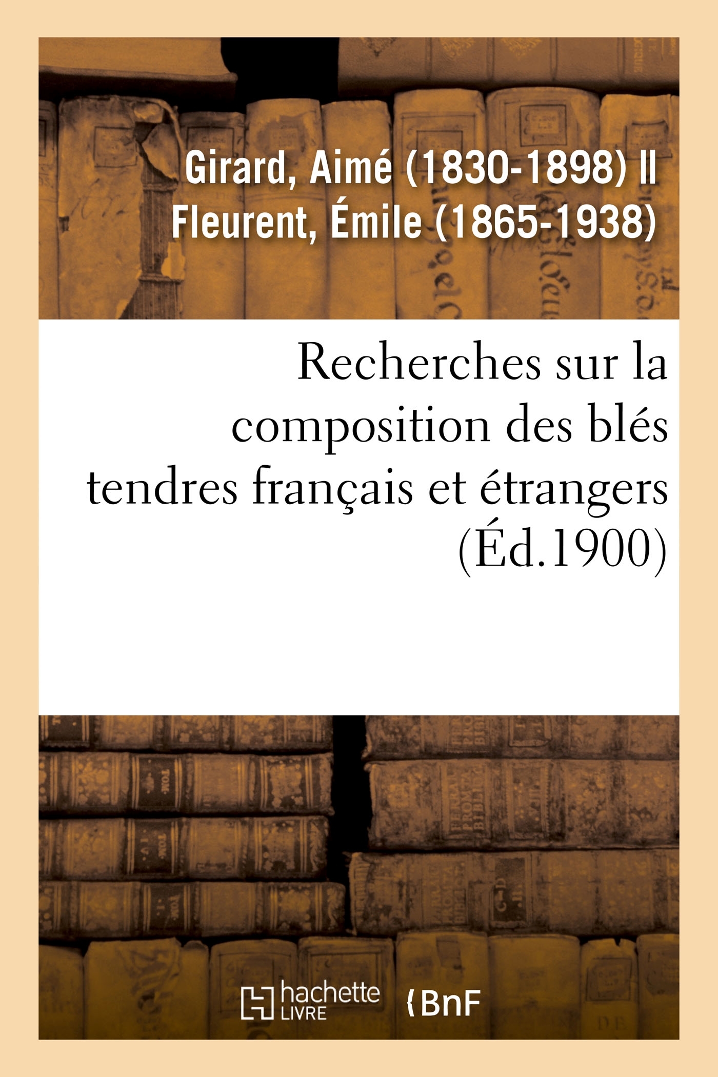 Recherches sur la composition des blés tendres français et étrangers, par Aimé Girard,... et M. E. Fleurent,... Date de l'édition originale : 1900 Le présent ouvrage s'inscrit dans une politique de conservation patrimoniale des ouvrages de la littérature Française mise en place avec la BNF. HACHETTE LIVRE et la BNF proposent ainsi un catalogue de titres indisponibles, la BNF ayant numérisé ces oeuvres et HACHETTE LIVRE les imprimant à la demande. Certains de ces ouvrages reflètent des courants de pensée caractéristiques de leur époque, mais qui seraient aujourd'hui jugés condamnables. Ils n'en appartiennent pas moins à l'histoire des idées en France et sont susceptibles de présenter un intérêt scientifique ou historique. Le sens de notre démarche éditoriale consiste ainsi à permettre l'accès à ces oeuvres sans pour autant que nous en cautionnions en aucune façon le contenu. Pour plus d'informations, rendez-vous sur www.hachettebnf.fr
