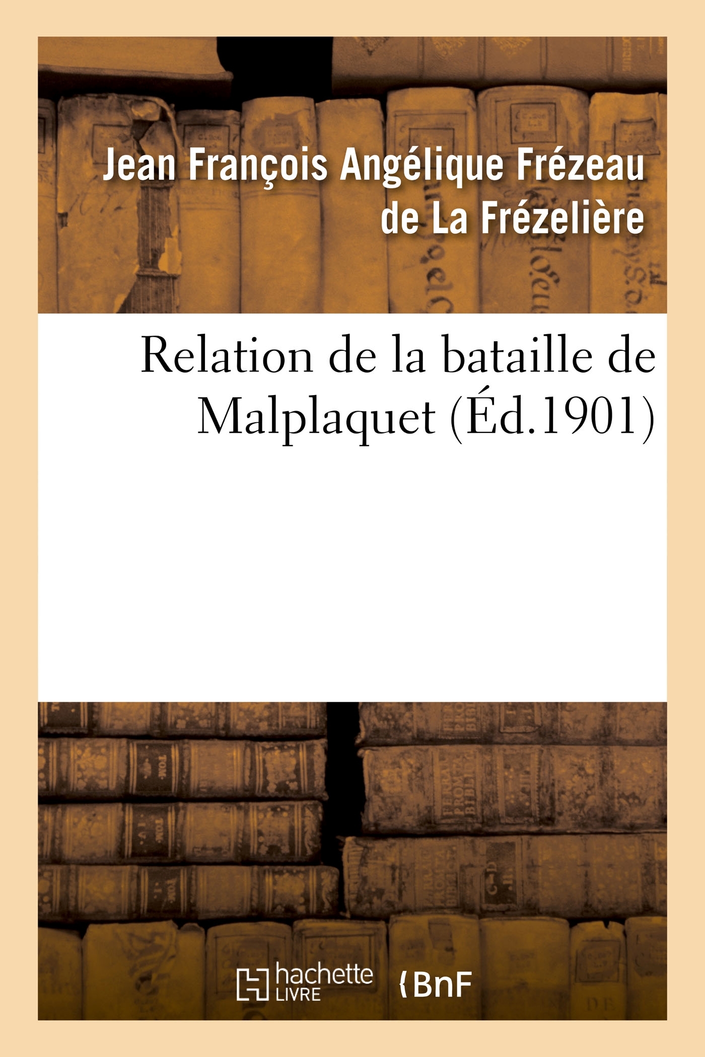 Relation de la bataille de Malplaquet / par le marquis J.-F.-A. de La Frézelière, lieutenant général des armées du roi Date de l'édition originale : 1901 Le présent ouvrage s'inscrit dans une politique de conservation patrimoniale des ouvrages de la littérature Française mise en place avec la BNF. HACHETTE LIVRE et la BNF proposent ainsi un catalogue de titres indisponibles, la BNF ayant numérisé ces oeuvres et HACHETTE LIVRE les imprimant à la demande. Certains de ces ouvrages reflètent des courants de pensée caractéristiques de leur époque, mais qui seraient aujourd'hui jugés condamnables. Ils n'en appartiennent pas moins à l'histoire des idées en France et sont susceptibles de présenter un intérêt scientifique ou historique. Le sens de notre démarche éditoriale consiste ainsi à permettre l'accès à ces oeuvres sans pour autant que nous en cautionnions en aucune façon le contenu. Pour plus d'informations, rendez-vous sur www.hachettebnf.fr
