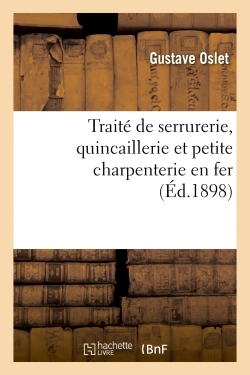 Traité de serrurerie, quincaillerie et petite charpenterie en fer#R, par Gustave Oslet,... Date de l'édition originale : 1898 Le présent ouvrage s'inscrit dans une politique de conservation patrimoniale des ouvrages de la littérature Française mise en place avec la BNF. HACHETTE LIVRE et la BNF proposent ainsi un catalogue de titres indisponibles, la BNF ayant numérisé ces œuvres et HACHETTE LIVRE les imprimant à la demande. Certains de ces ouvrages reflètent des courants de pensée caractéristiques de leur époque, mais qui seraient aujourd'hui jugés condamnables. Ils n'en appartiennent pas moins à l'histoire des idées en France et sont susceptibles de présenter un intérêt scientifique ou historique. Le sens de notre démarche éditoriale consiste ainsi à permettre l'accès à ces œuvres sans pour autant que nous en cautionnions en aucune façon le contenu. Pour plus d'informations, rendez-vous sur www.hachettebnf.fr