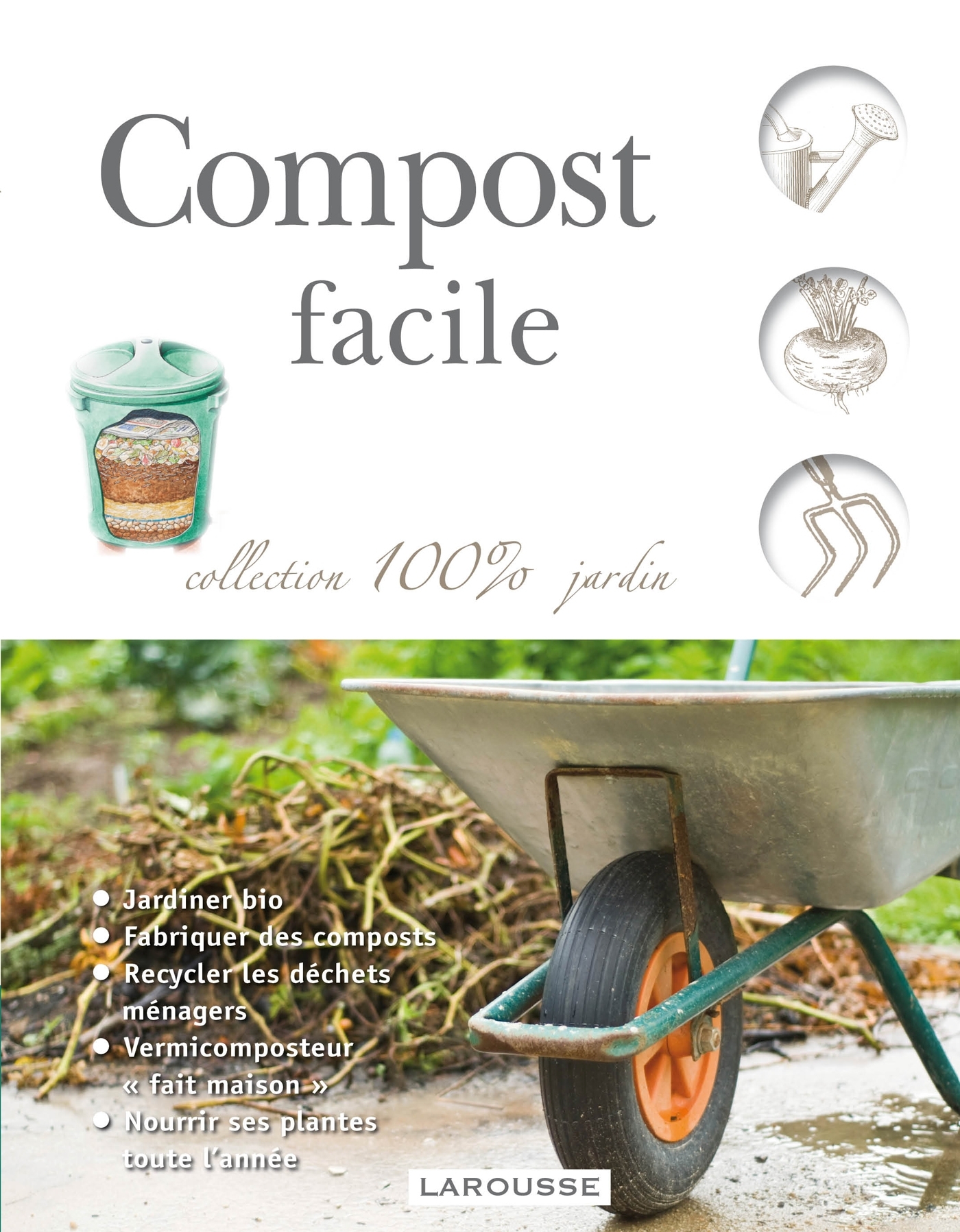 Un guide pratique très complet pour fabriquer du compost en recyclant ses déchets organiques, et pour fertiliser son jardin tout en préservant l’environnement. On y apprend quels sont les déchets compostables, comment fabriquer un composteur à partir de matériaux de récupération, comment pratiquer le vermi-compostage, etc.