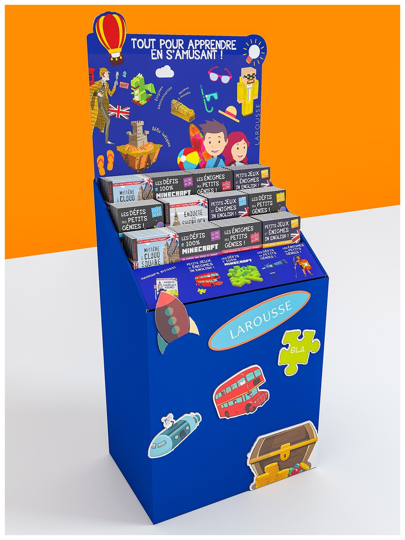 Retrouvez dans cette PLV les meilleures ventes de la collection des Petits génies ainsi que la nouvelle collection "Les énigmes des petits génies".