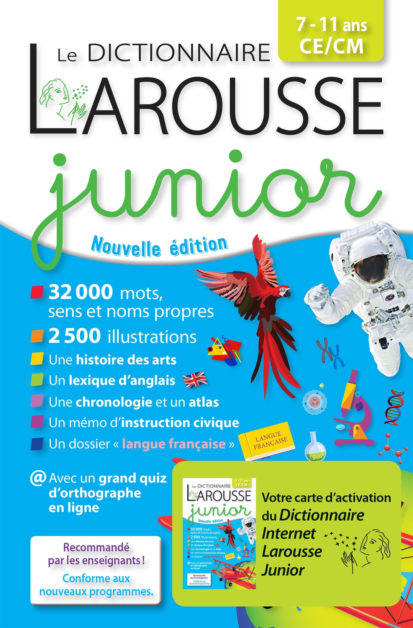 Un dictionnaire indispensable pour les élèves de CE1, de CE2 et CM1, en classe ou à la maison. Un outil idéal pour maîtriser la langue française ! 31 000 mots et sens (avec des définitions précises et des exemples concrets), 1 000 noms propres, 2 500 illustrations et planches thématiques. Et aussi : des listes de synonymes et de contraires, de nombreuses remarques de grammaire et d'orthographe ; des tableaux de conjugaison ; Les pages roses sur l'histoire de la langue française et sur les expressions françaises; un atlas du monde ; Une chronologie détaillée et illustrée ; un panorama sur l'histoire des arts ; un lexique d'anglais riche de plus de 1 000 mots, un mémento d'instruction civique et un quiz d'orthographe en ligne. Un dossier sur les étymologies Le plus de l'édition 2019 : changement d'illustrations au profit de photographies très modernes et parlantes pour les enfants de l'école primaire. Refonte de certaines planches thématiques.