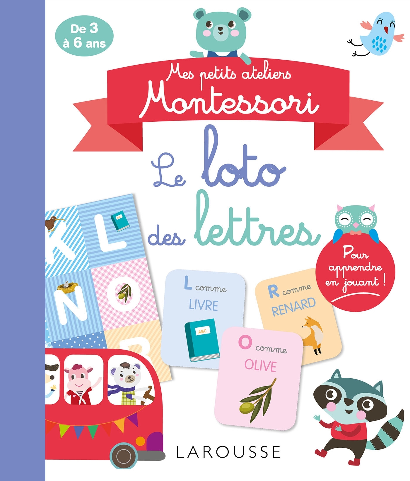Ce loto permet d'apprendre les lettres et les sons en s'amusant et en étant actif : l'enfant va associer une lettre à un mot, une grande lettre à une petite lettre... Il peut également s’autocorriger avec le verso des cartes. La pochette contient 6 planches et 36 cartes.