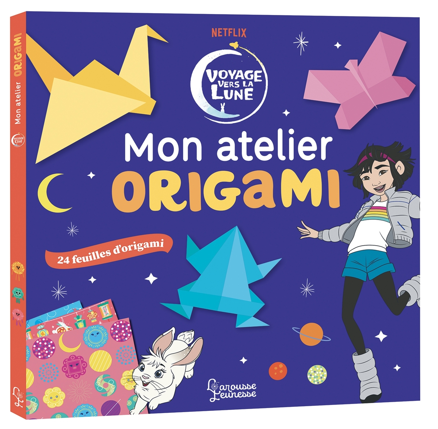 24 feuilles de papier origamis avec les jolis all-over de la bible graphique du film d'animation Voyage vers la lune . Un livre d’explication et de conseils, pour découvrir les plis de base en origami et réaliser de merveilleux pliages : un lapin, une grue, un papillon, une grenouille...