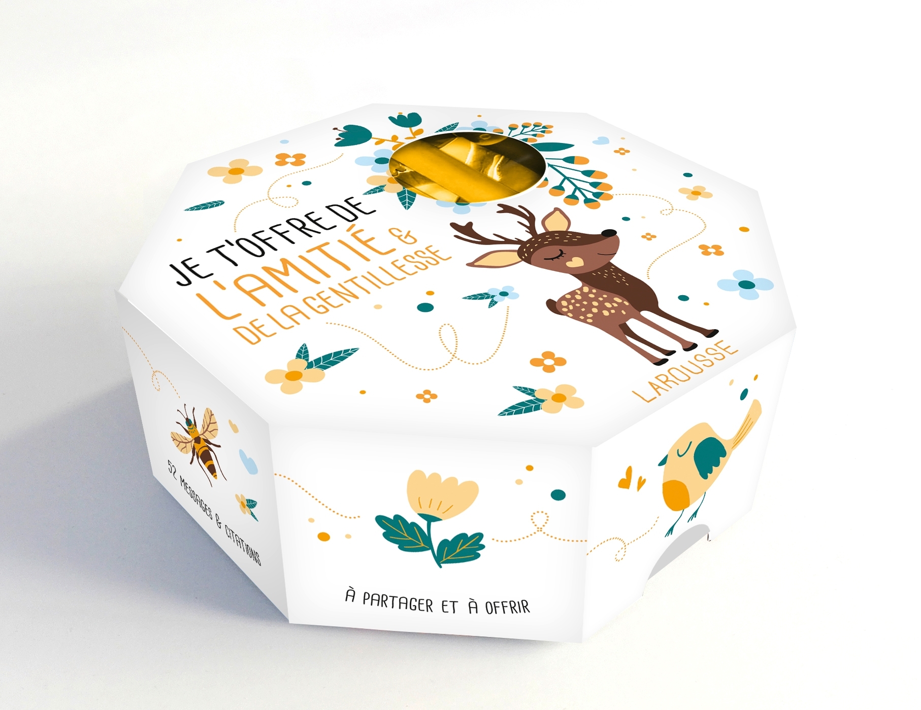 52 messages d’amitié et de gentillesse à dérouler contenant chacune une photo et une citation ou un proverbe à découvrir au fil des semaines.
