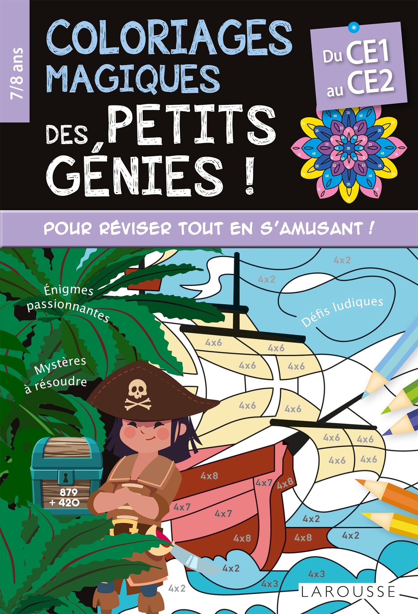 Pour tous les petits aventuriers du CE1, les coloriages magiques des Petits génies proposent de nombreux coloriages à décoder et des jeux malins pour réviser tout en s’amusant. À chaque page, dinosaures, licornes, fées, animaux de la forêt et créatures fantastiques se révèlent peu à peu… à condition de bien suivre le code ! • Colorie de la bonne couleur pour découvrir ce qui se cache derrière chaque grille et faire apparaître des scènes étonnantes . • Utilise tes connaissances en maths et en français pour résoudre des défis ludiques et des énigmes passionnantes !
