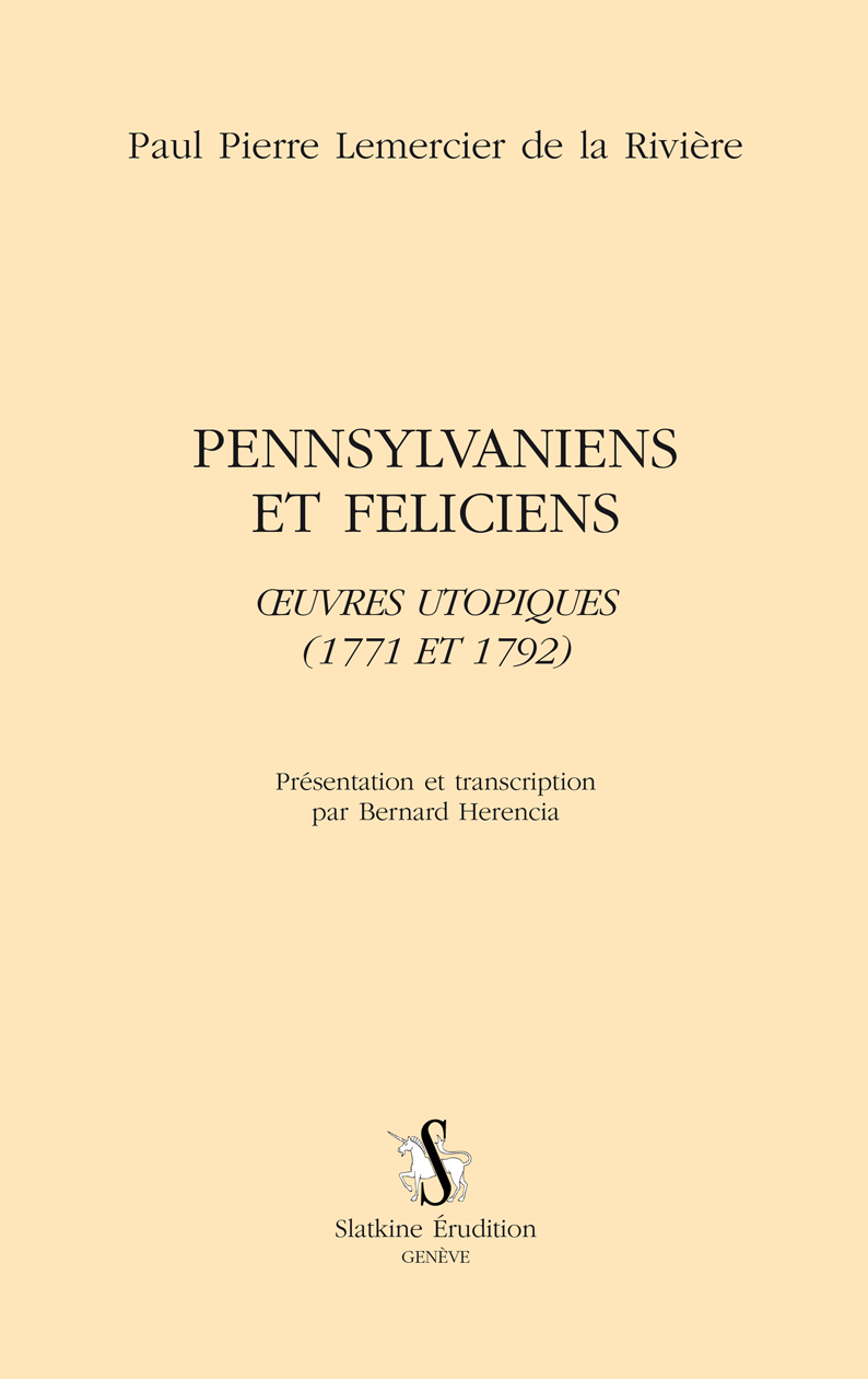 PENNSYLVANIES ET FELICIENS. OEUVRES UTOPIQUES (1771 ET 1772)