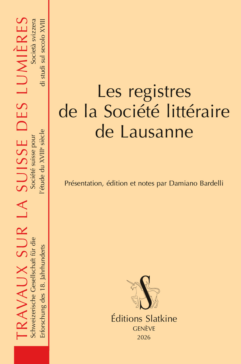 Parmi les nombreuses institutions qui ont animé la vie culturelle et intellectuelle lausannoise du XVIIIe siècle figure la Société littéraire de Lausanne. Active à deux reprises entre 1772 et 1783, cette société savante pratiquait une forme de sociabilité courante dans l’Europe des Lumières : ses membres s’assemblaient hebdomadairement pour discuter de questions convenues à l’avance, en s’appuyant souvent sur des essais rédigés pour l’occasion. Remarquablement cosmopolite, elle recrutait ses membres tant au sein des élites locales que de l’abondante communauté d’étrangers basés à Lausanne, en promouvant ainsi l’échange direct entre individus issus de différentes régions du continent autour de sujets d’actualité dans l’Europe des Lumières. Par rapport aux autres sociétés savantes de l’époque, la Société littéraire de Lausanne a laissé une documentation manuscrite remarquablement riche, incluant le règlement régissant sa conduite, les essais rédigés par ses membres et surtout les procès-verbaux détaillant sa gestion et les débats qui ont animé ses assemblées. Cette collection, conservée principalement dans les registres entretenus par les secrétaires de la société, est éditée intégralement dans le présent volume, avec un appareil de notes, de renvois et d’annexes.