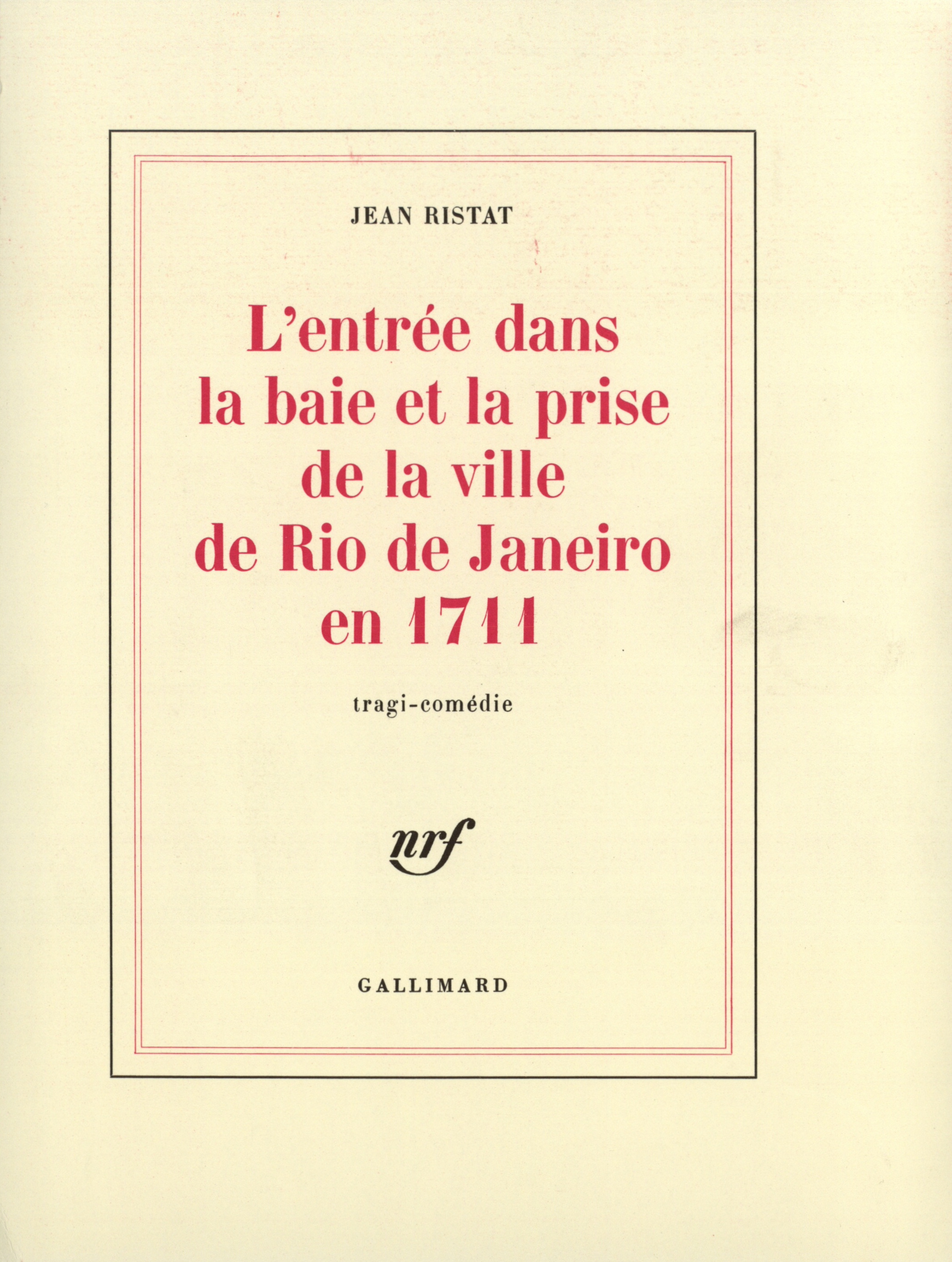 En même temps que La perruque du vieux Lénine, nous publions une nouvelle édition de cette autre pièce de Jean Ristat, à propos de laquelle Roland Barthes déclarait : "Au fond, la meilleure déconstruction ne consiste pas à abolir mais à déplacer. Nous sommes pris par l'histoire elle-même dans une entreprise historique de déconstruction de notre ancienne civilisation. Nous savons bien que nous ne pouvons pas déconstruire en détruisant le discours. La seule possibilité de combat qui nous est laissée est de déplacer le discours à l'intérieur même du discours. En employant ces formules générales, c'est précisément à votre entreprise que je pense et à L'entrée dans la baie. Votre travail vise à faire entrer le lecteur dans le jeu de quelque chose qui est à la fois connu et irreconnaissable. Si je glisse à cette formule, c'est parce qu'il est évident que toute votre textualité plonge profondément dans une expérience, dans une présentation, une mise en scène de l'inconscient."